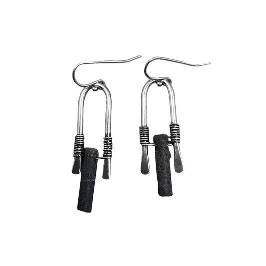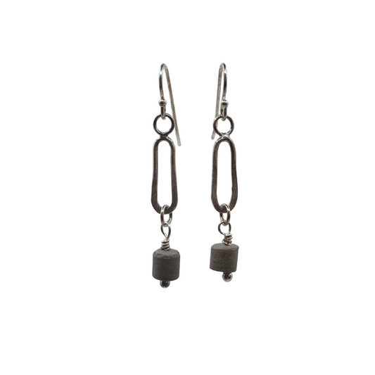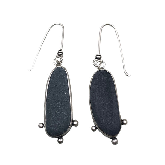 Beach Stone set in Sterling Silver with Spade Detail, Earrings