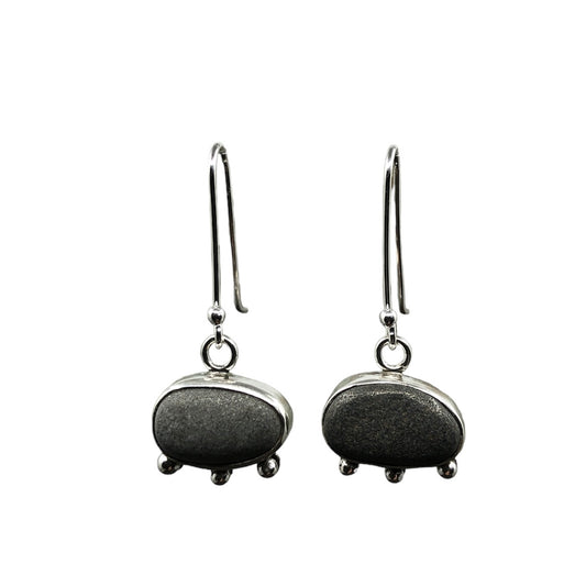 Simple Beach Stone Earrings with Granule Trio Detailing