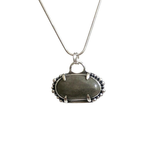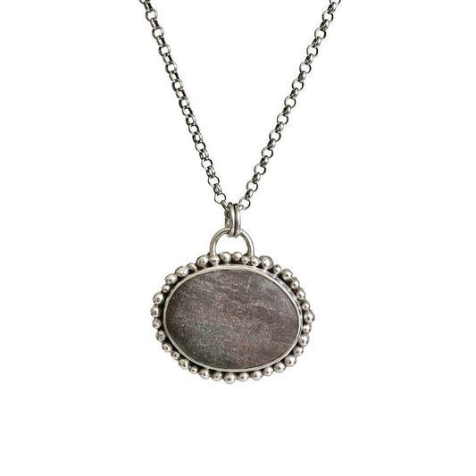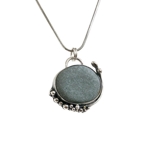 Sterling Silver and Oval Beach Stone Pendant with Granulation