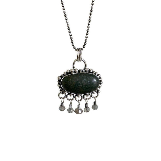 Chandelier Sterling Silver & Oval Beach Stone Pendant with Labradorite
