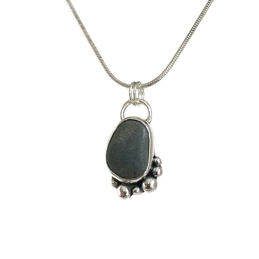 Mini Sterling Silver & Beach Stone Pendant with Granulation