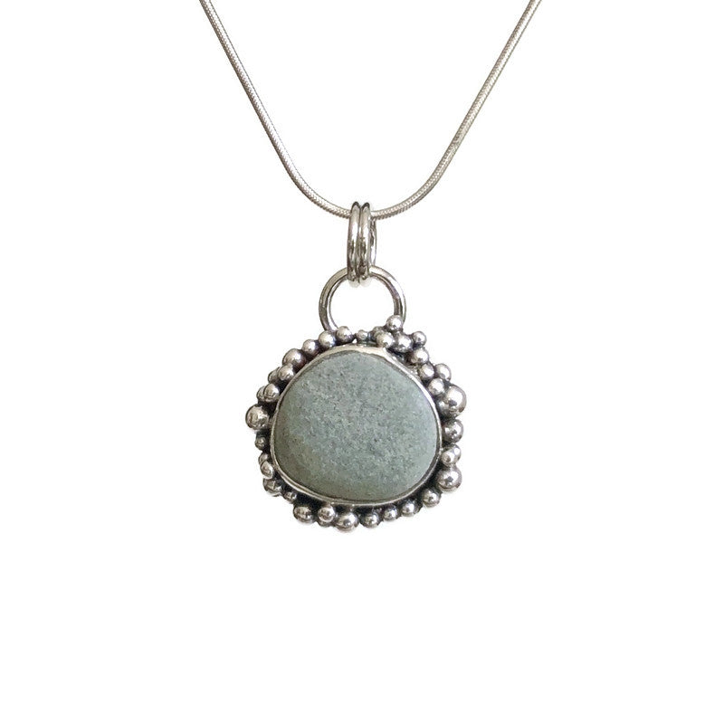 Small Sterling Silver and Beach Stone Pendant with Granulation